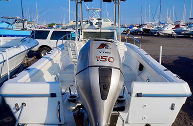 Center console with Bimini or T. Tops for shade, Yamaha 115-150 hp four-stroke motors. Trim tabs for a comfortable smooth ride.